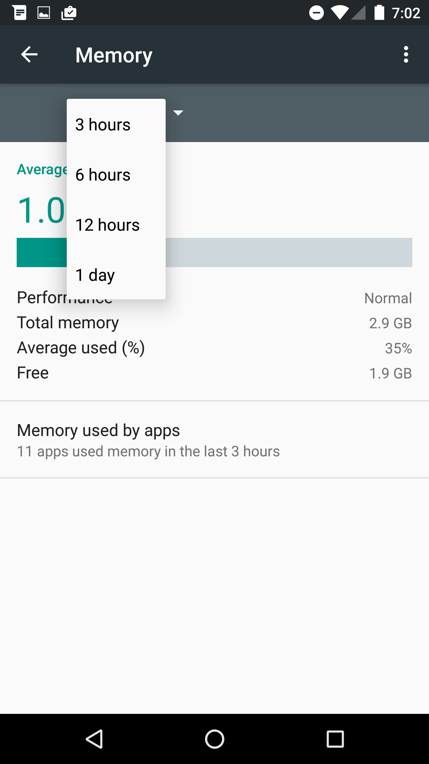 Once in, you can see how much system memory your device software is using. You can choose to see the amount of memory utilized by system software and apps for last 3, 6, and 12 hours or for the past full day. If you have installed some new app(s) in the last one day, you will see the spike in memory usage.