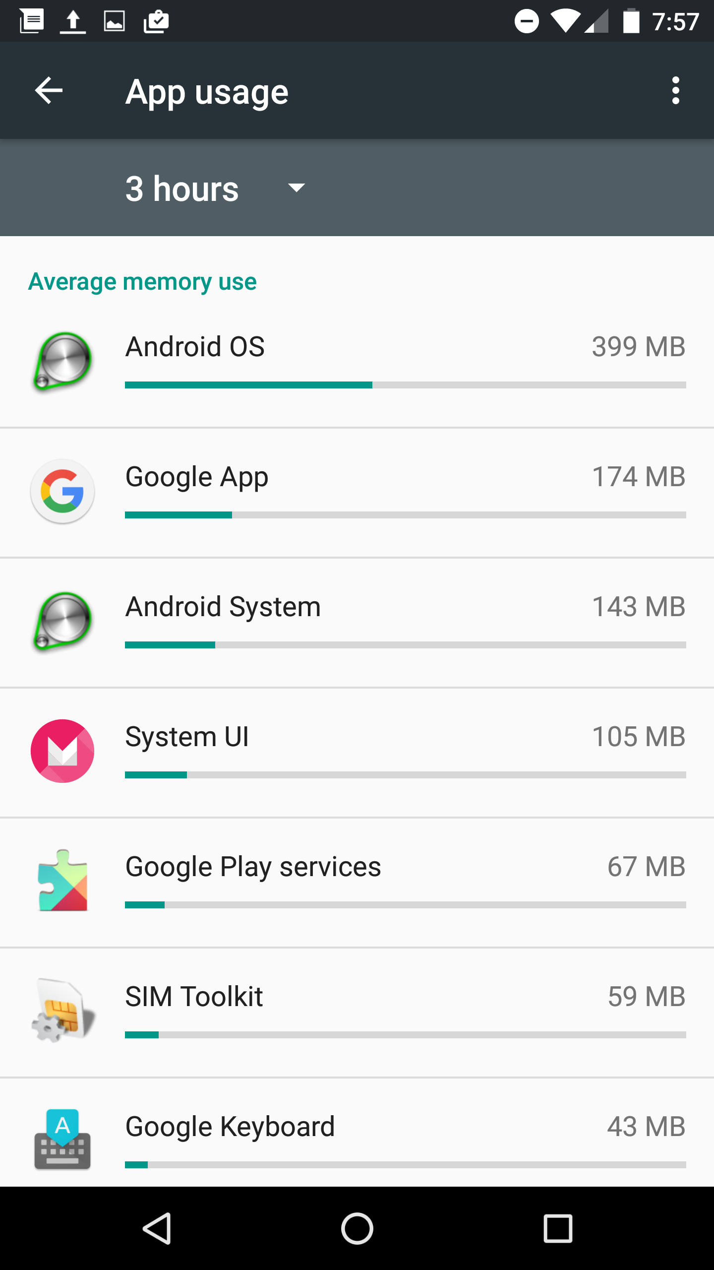 The most important part of this fix is when you click on the Memory used by apps options. Now, while we have a rather fresh install of Android 6.0 Marshmallow and this is not our primary device, our screenshots can’t mirror a device that is being used all the time with tons of apps installed. For users who are experiencing memory drain, tap on the Memory used by apps option, you will be presented with a screen like this: